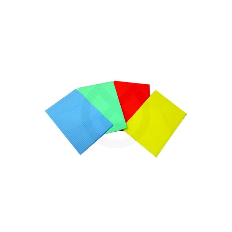 Servilletas babero de 3 capas (dos capas de papel y una capa plastificada). 48x33 cm.