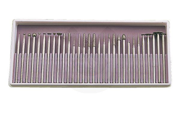 El set cuenta con un estuche que recoge las 30 formas que con más frecuencia se emplean el Laboratorio Dental. También se dispone de repuestos.