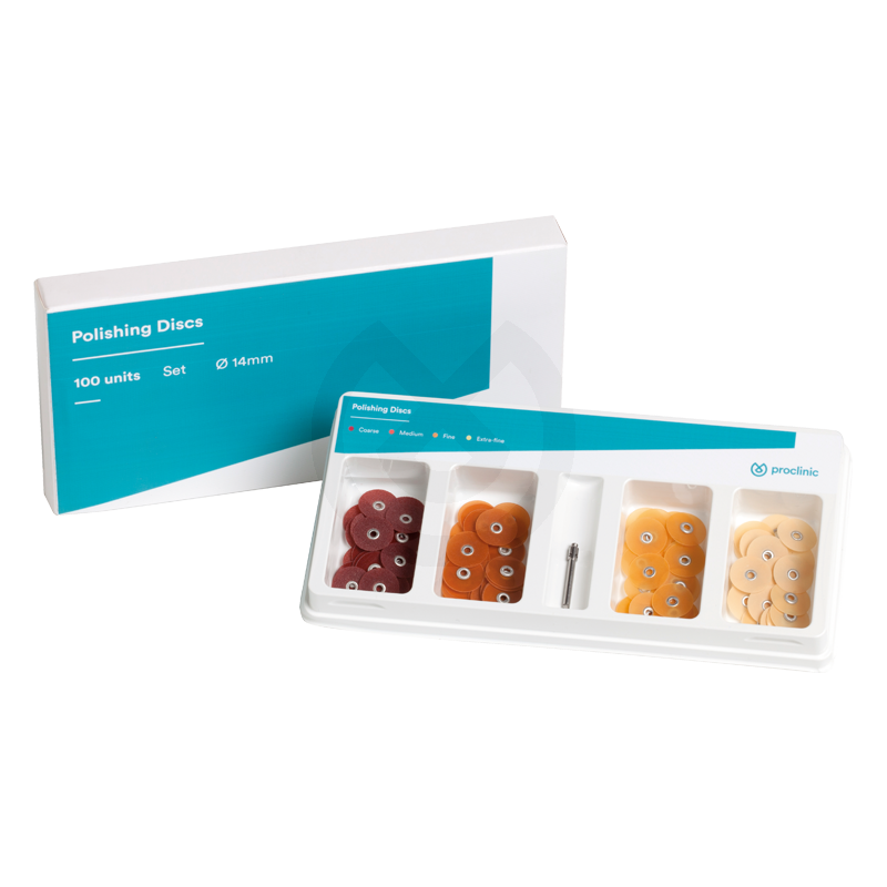 Discos de plástico para un excelente acabado y pulido. Especialmente diseñados para el pulido interdental, el sistema de Discos de Pulido Proclinic ofrece una solución completa para obtener un brillo superior en cada restauración. Muy flexibles, recubiertos con óxido de aluminio. Disponibles en cuatro granos de abrasividad y dos diámetros (10 mm y 14 mm) para cubrir todas las necesidades clínicas.
