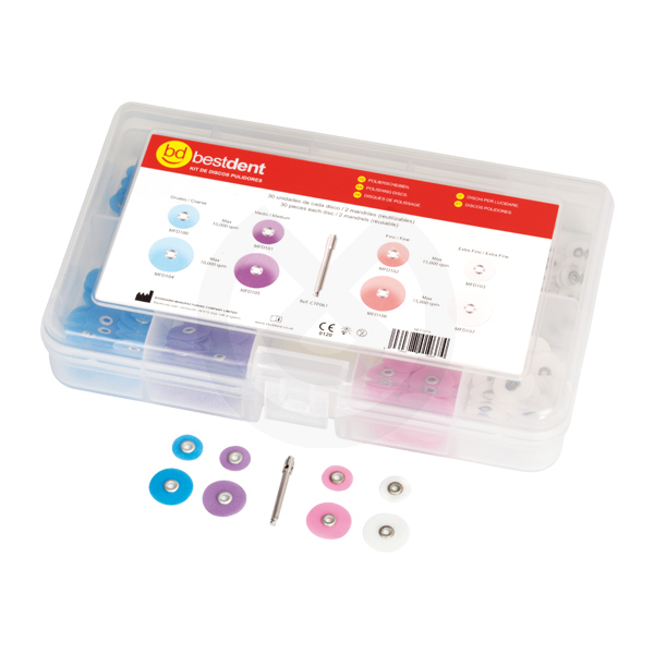 Discos para pulir de plástico y super-finos, ideales para el acceso a cualquier diente y a la zona interproximal. Una cara de los discos contiene grano de óxido de aluminio para un pulido excelente.