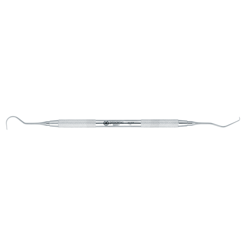 Instrumento de exploración doble, utilizado normalmente para el diagnóstico de caries, examinación de las superficies dentales y para un uso general en tratamientos odontológicos. Sonda 4/6 también denominada 17/23.