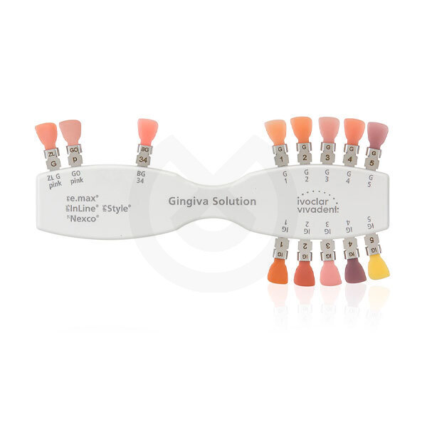 La guía de color Gingiva Solution para los materiales IPS e.max, IPS InLine, IPS Style y SR Nexco, es una herramienta de apoyo para determinar el color.
