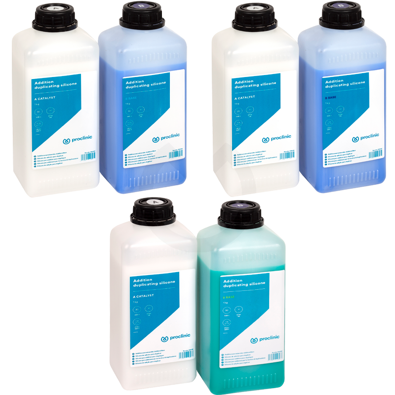 Silicona de adición elástica de alta precisión para el duplicado de modelos de laboratorio. Tiene una alta fluidez, de fácil desgasificación, rápido curado, excelente precisión de reproducción y alta estabilidad dimensional en el tiempo y una excelente compatibilidad con los recubrimientos de fosfato, resinas de poliuretano y yesos.
