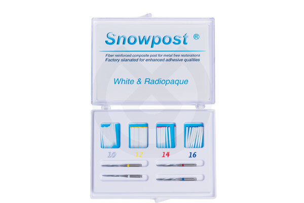 Snowpost es el primer poste radiopaco y blanco de fibra de sílice para reconstrucciones estéticas. Fabricados en fibra de sílice y dpp+MOR. Estas fibras tienen las mismas características mecánicas que las del carbono pero se presentan en coloración blanca y son altamente radiopacas.