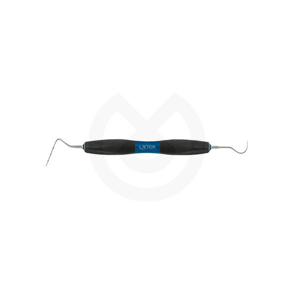 Intrumento para periodoncia que combina una sonda del n.23 y explorador de 1-15 mm. Con mango ergonómico de silicona.