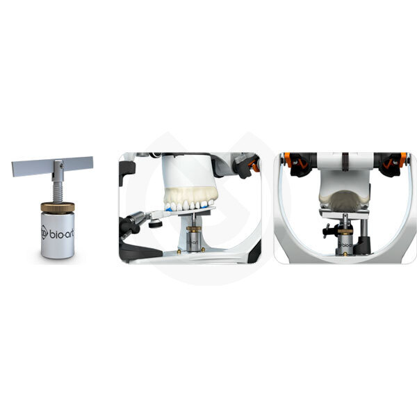 A través de su ajuste vertical (altura), el soporte del tenedor es utilizado como un «calzo» durante el montaje del modelo superior cuando este es realizado con arco facial. El soporte del tenedor permite mayor estabilidad del registro, evitando distorsiones indeseadas.