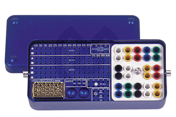 Con recipiente removible de metal. Caja de Endodoncia 203 Maillefer. Completísima caja organizadora para instrumentos de endodoncia. Mide 21 X 10 cm y tiene capacidad para 140 instrumentos distribuidos en los diferentes tipos de limas, léntulos etc.Tiene también recipiente para pellets y para las puntas de guttapercha y papel. Todos los componetes son desmontables.