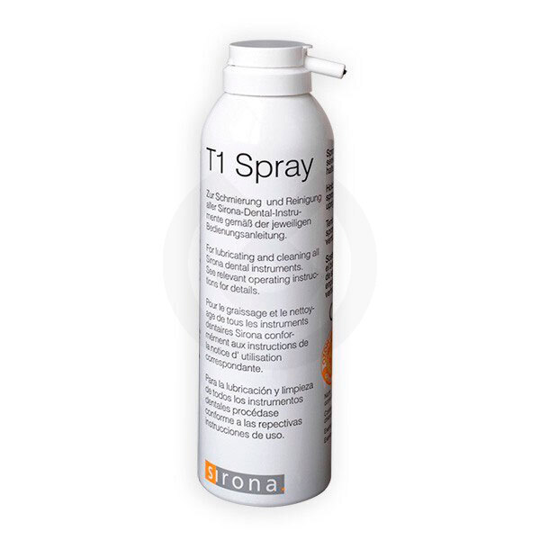 T1 Spray de Sirona es un spray limpiador y lubricante universal de instrumental.