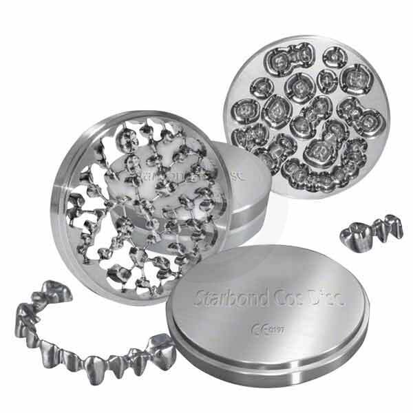 Aleación fundida de cromo cobalto para la fabricación de prótesis dentales fijas y removibles mediante fresado CAM. No requiere cocción de oxidación. Las paredes de la corona en la modelación virtual deben tener un grosor mínimo de 0,4 mm.
