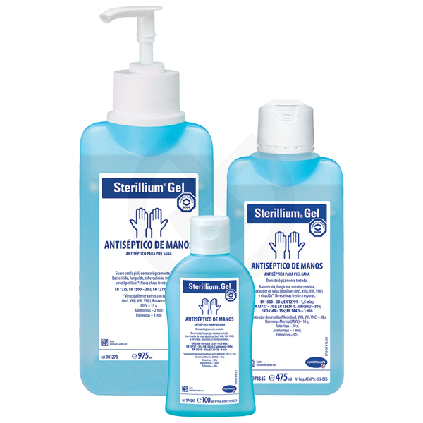 Modo de empleo: Sterillium se aplica sin diluir sobre las manos secas. Debe asegurarse que estas se mantengan humedecidas mientras dura el proceso de frotación. Para asegurar una buena desinfección se recomienda usar la técnica estándar de desinfección de manos por frotación (EN 1500).