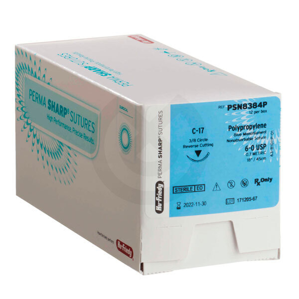 Suturas Perma Sharp de polipropileno monofilamento no reabsorbible.