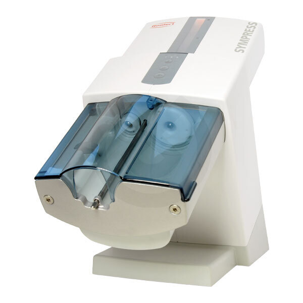 Sympress, el mezclador automático de materiales de impresión con una proporción de mezcla de 5:1, ofrece un alto nivel de rendimiento, así como una excelente calidad y funcionalidad. Permite mezclar todos los productos Zhermack con una proporción 5:1 (Putty, Heavy Body y Monophase) y es compatible con los principales sistemas 5:1 disponibles en el mercado.