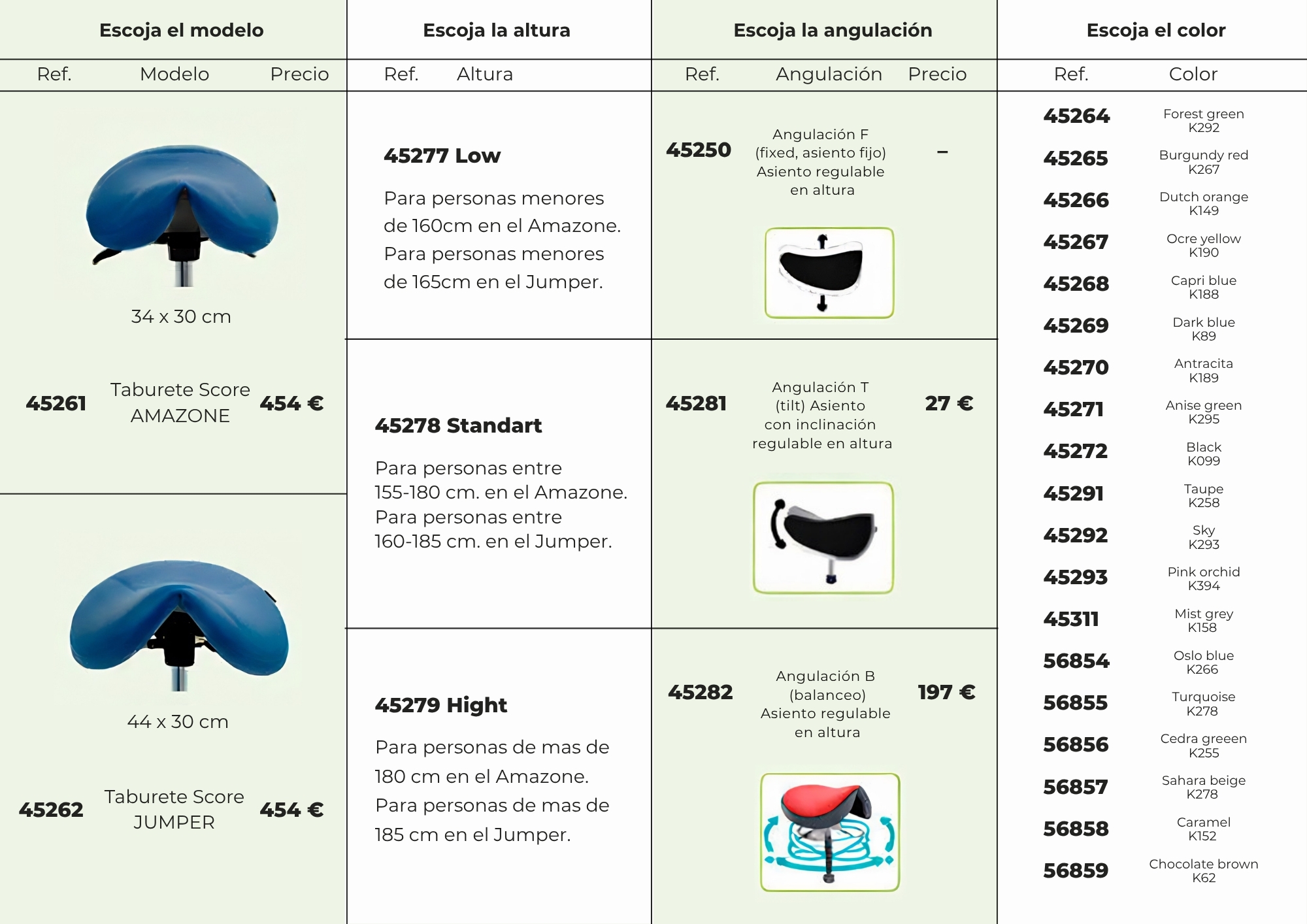NOTA IMPORTANTE: Debe escoger modelo, altura, angulación y color.