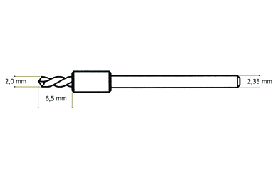 Empleo para el taladrado con la pieza de mano. Para Bi-Pin y Bi-V-Pin. Profundidad de perforado óptima gracias a un tope. Perforación 6,5 mm (0.26'), Ø de cabeza 2,0 mm (0.08'), Ø vástago 2,35 mm (0.09').