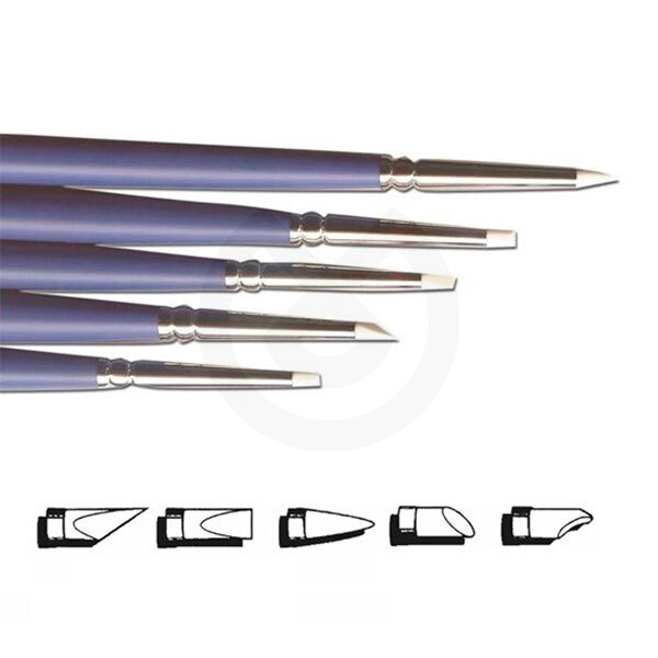 Pinceles de goma blancos pequeños y blandos para modelación del composite; puntas con 5 formas diferentes.