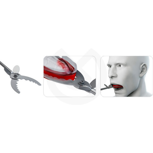 El tenedor para desdentado es un accesorio del Arco Facial que posee dos astas regulables para adaptación en el reborde alveolar de desdentados totales (planos de cera), como también para pacientes dentados con diferentes anchuras de arco dental.