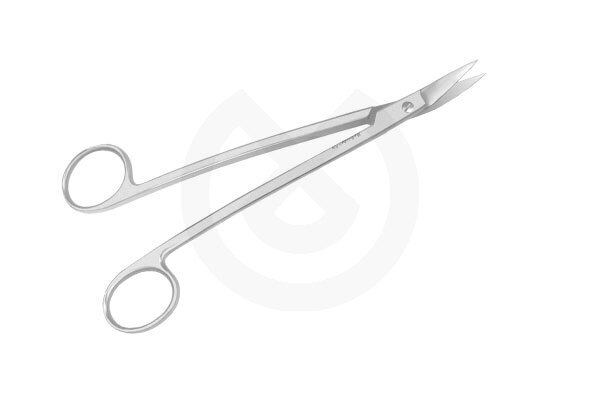 Tijeras modelo Dean curvadas para facilitar el acceso a la cavidad oral. Poseen una hoja finamente dentada para evitar que el tejido resbale.