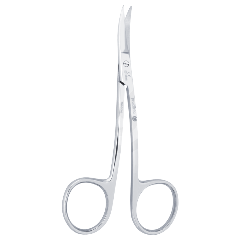 Tijeras LAGRANGE con doble curbatura (en el mango y en la punta). Se utilizan principalmente en micro-cirugía ya que permiten realizar cortes diagonales en la zona distal. Super corte. Longitud: 10,5 cm.