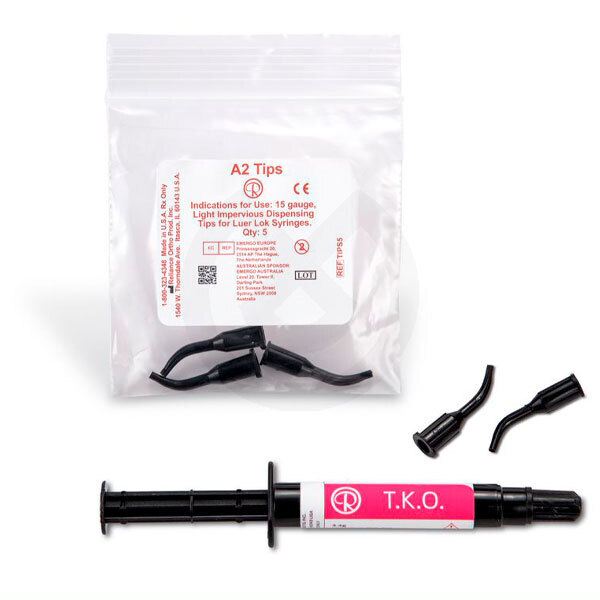 T.K.O.® de Reliance® Orthodontics es una pasta de composite fotopolimerizable, tipo gel, color Rosa con mucha fuerza y con un módulo bajo de elasticidad. T.K.O.® se utiliza para tanto laboratorios como clínicas.