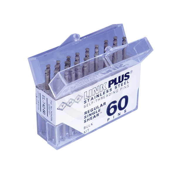 - Pins autorroscantes, aleación de titanio alfa-beta o de oro chapado en acero inoxidable.