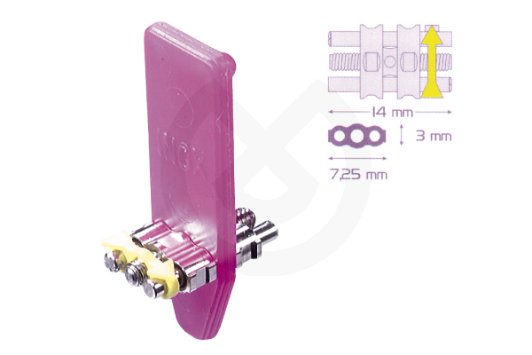 Fabricados en acero inoxidable biomedical; las tolerancias de la rosca del tornillo macho se calculan en centésimos; la rosca está totalmente exenta de asperezas superficiales; el cuerpo del tornillo y las guías están fabricados con tolerancias de ± 0,01 mm, garantizando así la absoluta estabilidad y precisión. Los tornillos de expansión se utilizan siempre como parte activa de aparatos removibles: la serie incluye numerosos modelos, en diferentes tamaños, con un potencial de expansión variable y diferentes propiedades técnicas, todos ellos con doble guía y una flecha que indica la dirección de apertura.