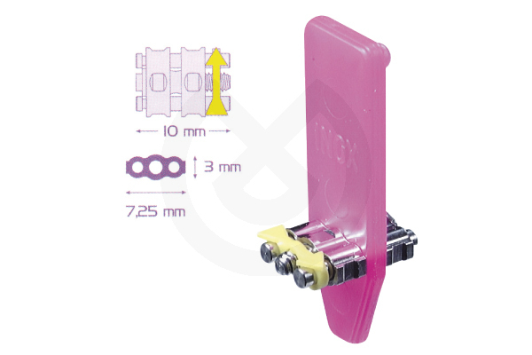 Fabricados en acero inoxidable biomedical; las tolerancias de la rosca del tornillo macho se calculan en centésimos; la rosca está totalmente exenta de asperezas superficiales; el cuerpo del tornillo y las guías están fabricados con tolerancias de ± 0,01 mm, garantizando así la absoluta estabilidad y precisión. Los tornillos de expansión se utilizan siempre como parte activa de aparatos removibles: la serie incluye numerosos modelos, en diferentes tamaños, con un potencial de expansión variable y diferentes propiedades técnicas, todos ellos con doble guía y una flecha que indica la dirección de apertura.