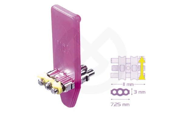 Fabricados en acero inoxidable biomedical; las tolerancias de la rosca del tornillo macho se calculan en centésimos; la rosca está totalmente exenta de asperezas superficiales; el cuerpo del tornillo y las guías están fabricados con tolerancias de ± 0,01 mm, garantizando así la absoluta estabilidad y precisión. Los tornillos de expansión se utilizan siempre como parte activa de aparatos removibles: la serie incluye numerosos modelos, en diferentes tamaños, con un potencial de expansión variable y diferentes propiedades técnicas, todos ellos con doble guía y una flecha que indica la dirección de apertura.