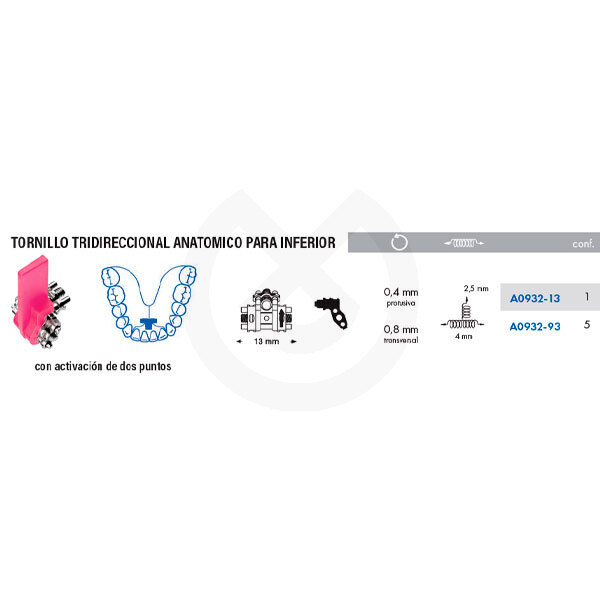 Tornillo tridireccional anatómico para inferiores con activación en dos puntos