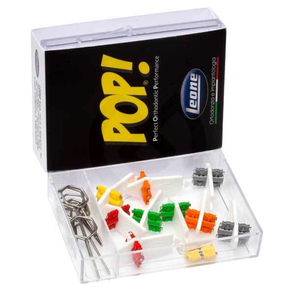 El tornillo POP está fabricado en acero y tecnopolímero. El cuerpo del tornillo está disponible en cinco colores. Tienen una fuerza de expansión constante sin riesgos de desactivación indeseada en boca. El tornillo macho no está en contacto con la resina ortodóntica: el funcionamiento no será afectado por la calidad, técnica y el respeto de los tiempos de polimerización.