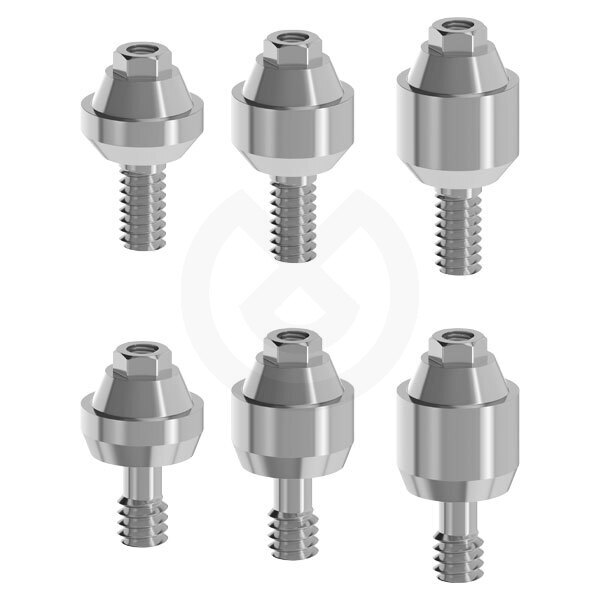 La existencia en varias alturas, 2.0 mm, 3.0 mm y 4mm en pilares rectos permiten elevar el plano de asentamiento de la prótesis cuando existe un grosor de tejido blando que no es adecuado para realizar una conexión directa a implante.