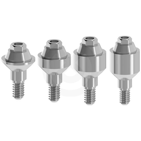 La existencia en varias alturas, 1.0 mm, 2.0 mm, 3.0 mm y 4.0 mm en pilares rectos permiten elevar el plano de asentamiento de la prótesis cuando existe un grosor de tejido blando que no es adecuado para realizar una conexión directa a implante.
