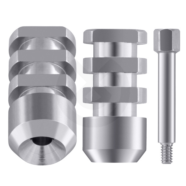 Finalidad: Aditamento que conexionado a la porción superior o coronal del implante en el interior de la cavidad bucal y fijado mediante un tornillo pasante de rosca, sirve para realizar la transferencia de la posición del implante en el medio biológico a un modelo de trabajo de laboratorio. Esto se consigue gracias al empleo de materiales de impresión que colocados en una cubeta apropiada, endurecen dentro de la cavidad bucal. Una vez retirado de boca se coloca en el hueco que ha dejado el transfer en el material, consiguiendo una réplica de implante. Posteriormente se realiza el vaciado en un material de escayola- yeso para obtener el modelo positivo y donde queda la réplica en la posición original que tiene el implante en boca.