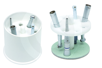 Turboclean: contenedor de rotatorios. Contenedor esterilizable para el goteo de los líquidos de turbinas, piezas de mano… con 8 agujeros y 5 discos absorbentes.