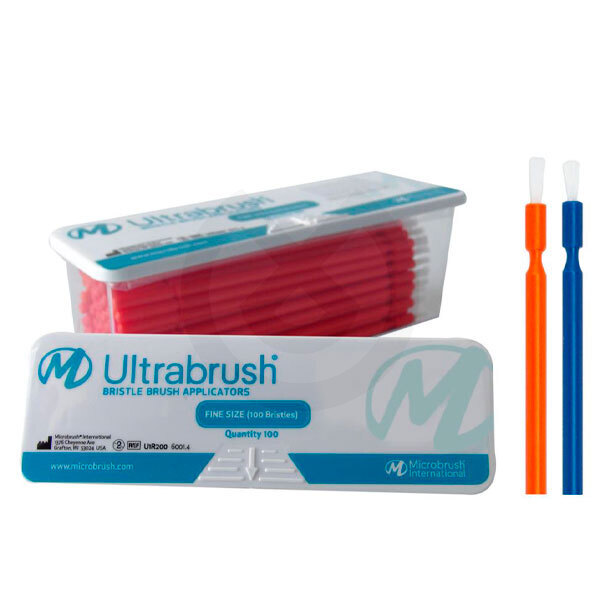 - Las fibras del aplicador de cepillo de cerdas UltraBrush son resistentes a los productos químicos para soportar los materiales dentales más duros. El cabezal del aplicador se dobla cerca de la punta y garantiza una aplicación precisa al mismo tiempo que proporciona un mejor control. Gracias a la tecnología ''Stay-Put Bending'', el cabezal del aplicador permanece en el ángulo deseado sin rebotes.
