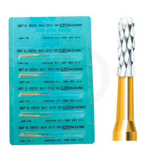 Fresas para cortar metal (carburo de tungsteno). Especialmente diseñada para cortar y perforar coronas y puentes (oro y cromo níquel u otras aleaciones no preciosas) así como para eliminar composites y amalgama.