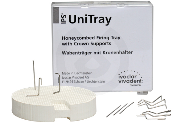 Bandeja de cocción universal. Si IPS Unitray se utiliza en un horno cerá mico, los pines metálicos que se incluyen son los indicados para colocar las restauraciones de la manera adecuada.