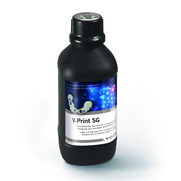 Producto médico clase II desarrollado para la fabricación por adición de plantillas de perforación. Gracias a su precisión se puede realizar la implantación con mayor exactitud y previsibilidad. V- Print SG se puede esterilizar con vapor durante 5 minutos a 134º. Es biocompatible, tiene sabor neutro y ofrece una elevada resistencia a la flexión. Idónea para impresoras DLP con un espectro de UV-LED de 385nm.