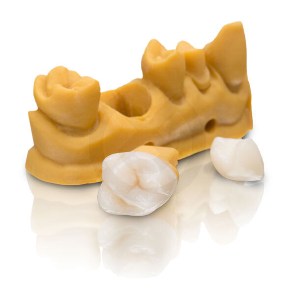 VarseoSmile Crown plus es el material híbrido con relleno cerámico del mismo color que los dientes para la impresión 3D de coronas individuales, inlays, onlays y carillas permanentes.