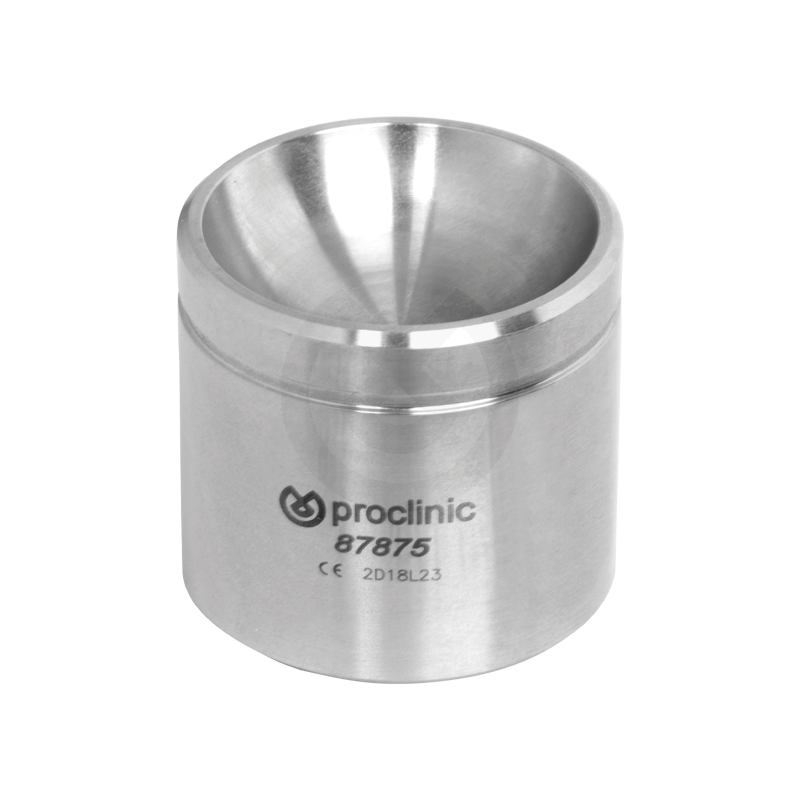 Vaso de acero utilizado en cirugía ósea. Ideal para contener hueso/hidroxiapatita. Esterilizable en autoclave. Ø 3,5 cm. Altura: 3,5 cm.
