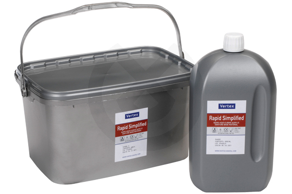 Resina termopolimerizable para la confección de prótesis completas y parciales mediante la técnica de mufla-prensado. Puede polimerizarse en 20 minutos una vez introducida la mufal en agua hirviendo.