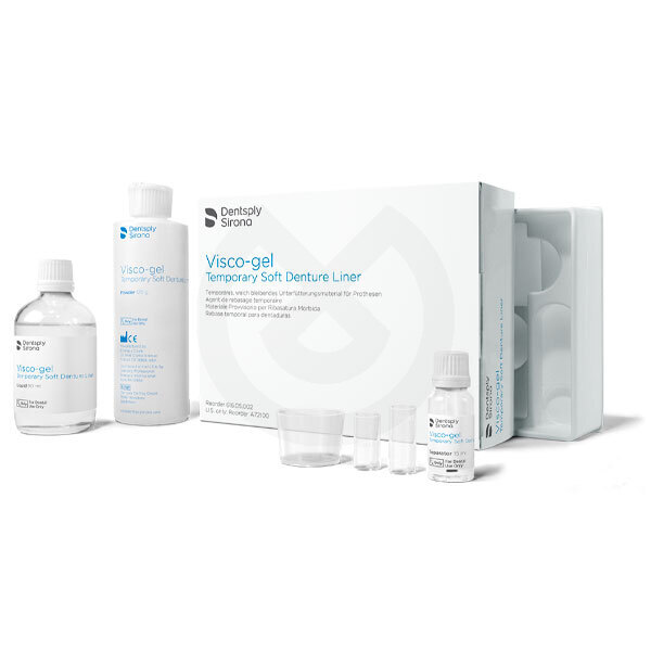 Acondicionador de tejidos. Visco-gel Base Temporal Suave para Removibles es una formulación de metacrilato elástico de auto-fraguado, destinada a su uso como material de recubrimiento blando por tiempo limitado para prótesis dentales completas y parciales. Cumple con el ISO 10139 para materiales elásticos de revestimiento temporales para prótesis removibles.