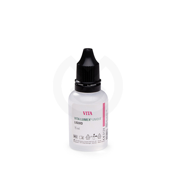 El VITA Lumex Unique Liquid (15 ml) es el líquido de trabajo diseñado para hidratar y modular la consistencia de las cerámicas líquidas VITA Lumex Unique.