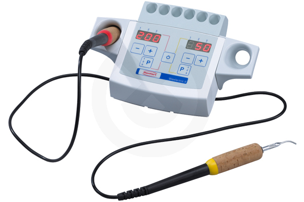 Espátula eléctrica para cera. El concepto de aplicación se concentra en la seguridad, precisión y la sencillez en el manejo. Control digital. Puede trabajarse paralelamente con dos piezas de mano a la vez.