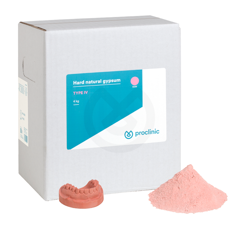 Yeso duro de tipo IV para la realización de modelos en prótesis fija, esqueléticos y prótesis removible en color rosa.